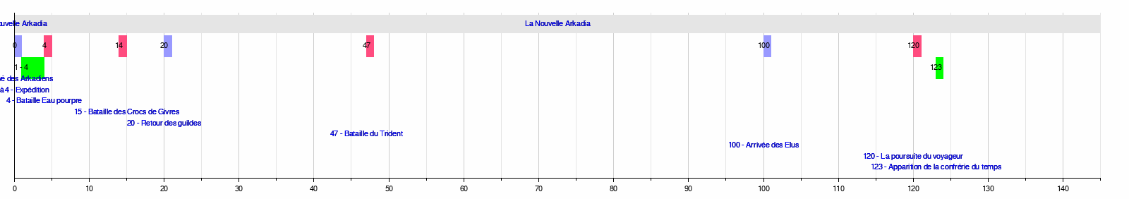 from:start till:end text:"[[La Nouvelle Arkadia]]" | from:start till:end text:"[[La Nouvelle Arkadia]]" | ||