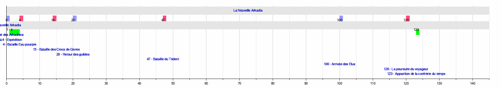 from:start till:end text:"[[La Nouvelle Arkadia]]" | from:start till:end text:"[[La Nouvelle Arkadia]]" | ||
